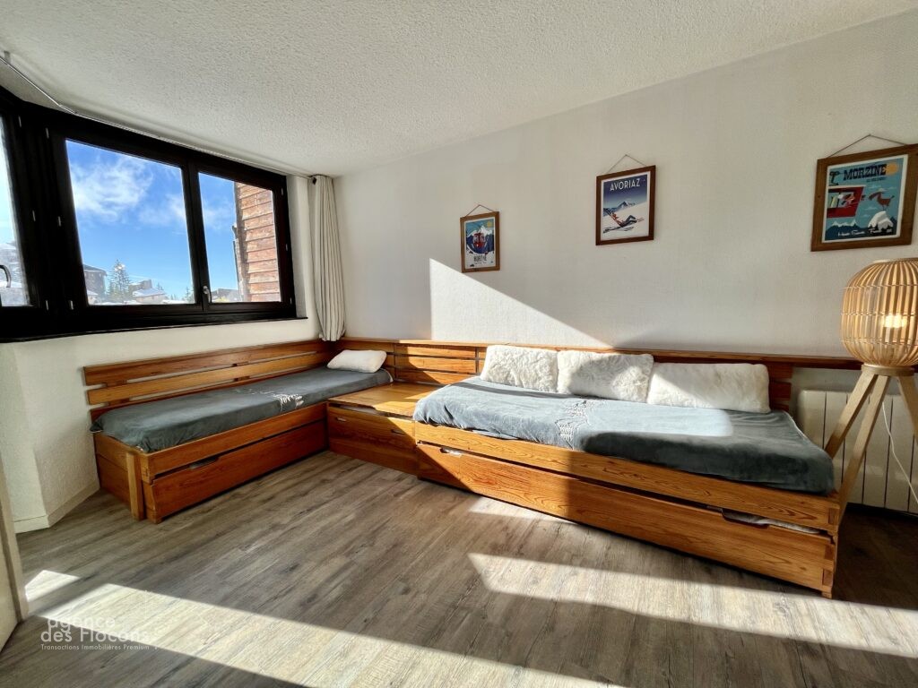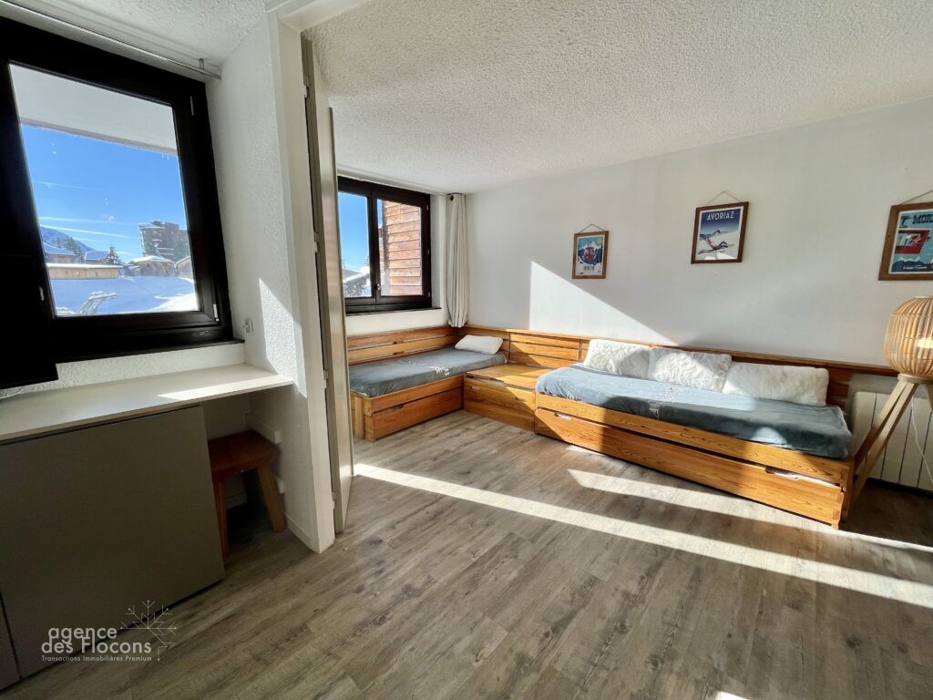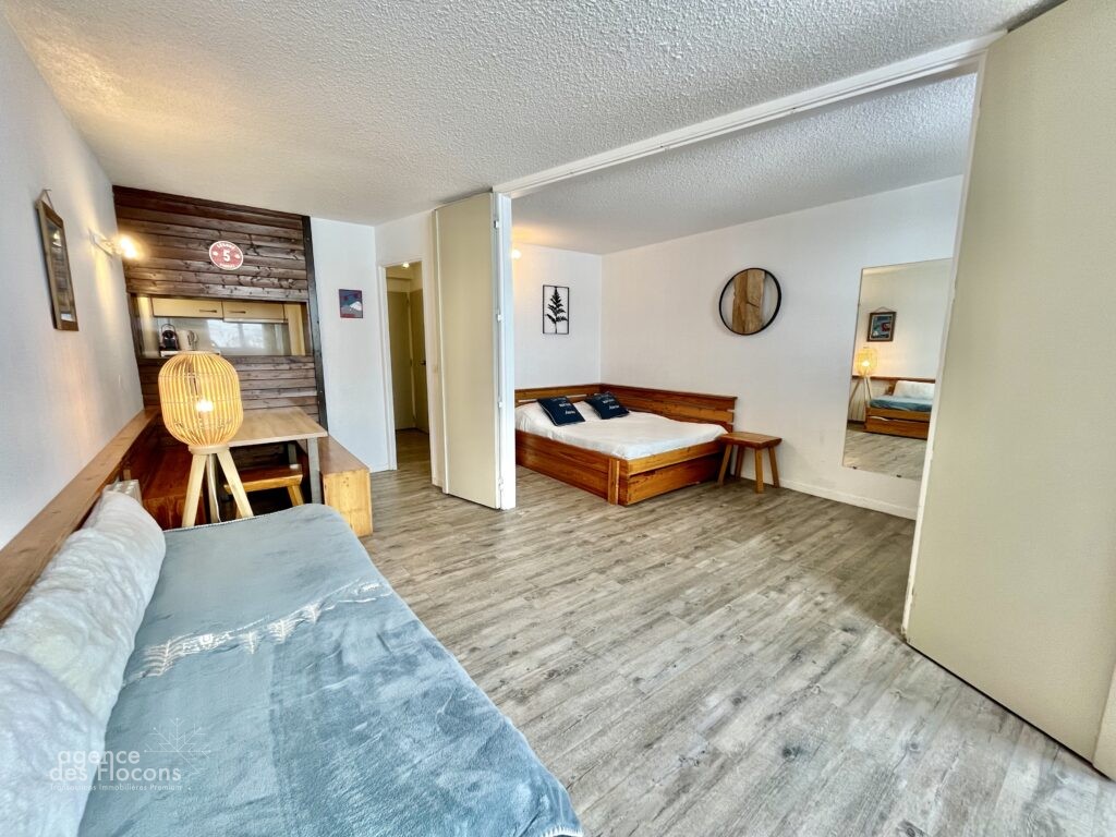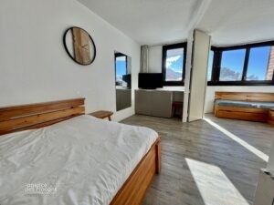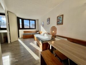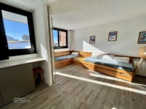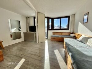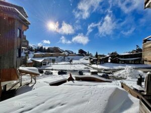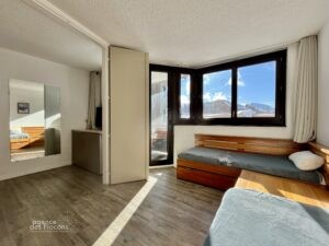 Depuis le balcon, exposé Sud-Ouest, vous profiterez d’une jolie vue sur la station.