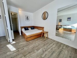 L’appartement est vendu meublé et équipé pour 4-5 personnes avec un casier à skis et un placard-cellier.