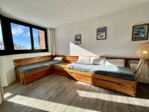 Au coeur de la station, sur la Promenade du Festival, ce 2 pièces lumineux, situé au 2è étage de la résidence Les Intrêts 1, s’organise comme suit: