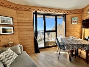 Dans le quartier des Hauts Forts, en bas de la station, juste en face de l’arrivée du téléphérique des Prodains, au calme, au 5 ème étage, ce spacieux appartement de 34 m2 rénové offre le confort d’une vraie chambre et de 2 cabines.