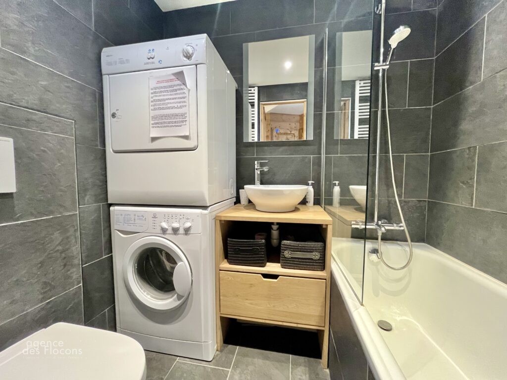 - Une salle de bain avec baignoire, WC et lave linge, complète cet appartement.