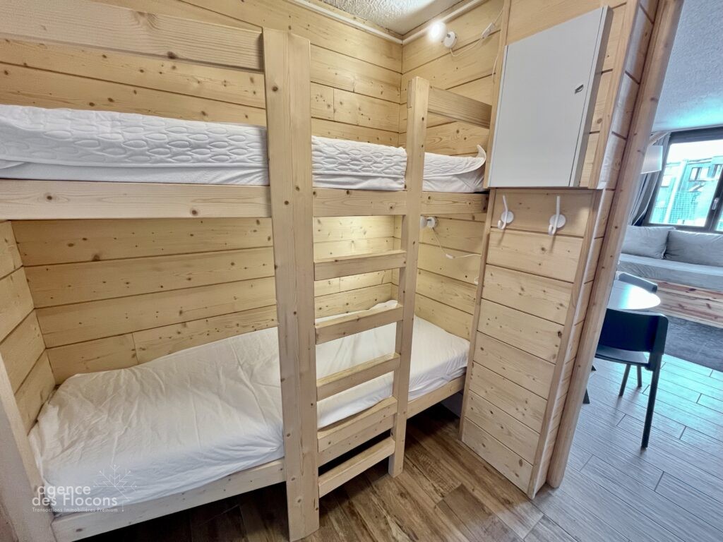 Ce bien est vendu meublé et équipé pour 4/6 personnes avec la jouissance de 2 casiers à skis (un dans le nouveau local et un second dans l’ancien local) situé dans les parties communes.