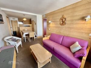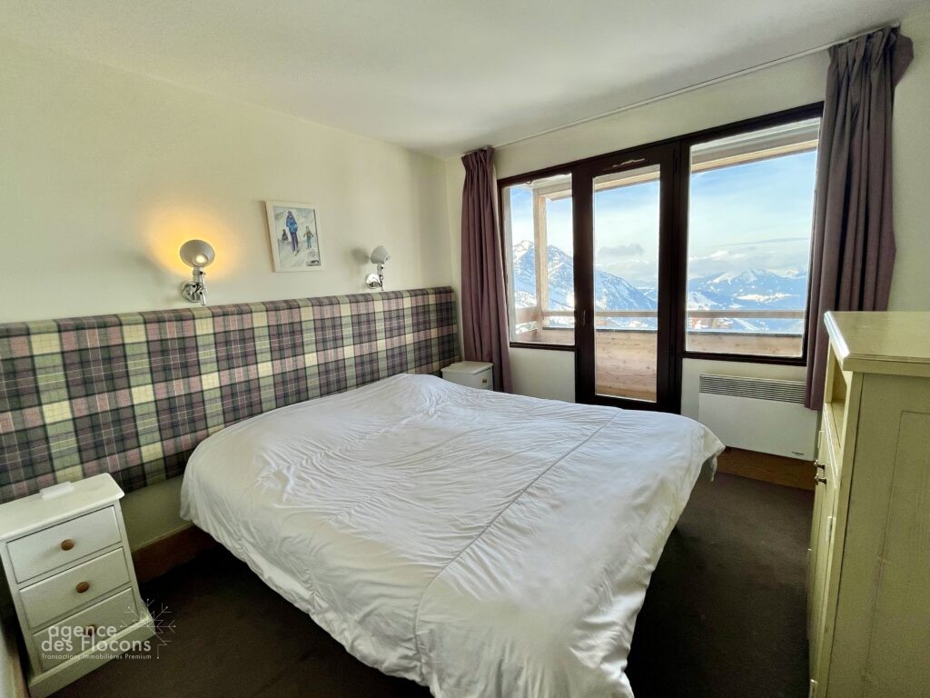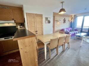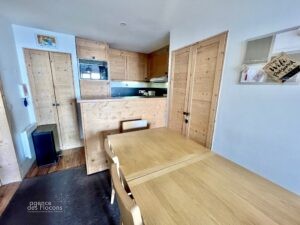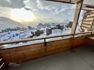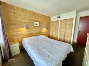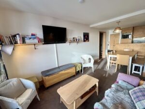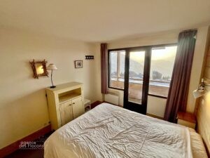Dans le secteur des Crozats (haut de la station), à 5 minutes à pied du centre, au 3ème étage de la résidence Aster (copropriété de seulement 33 appartements), ce 3/4 pièces bénéficie d’une exposition Sud-Ouest.