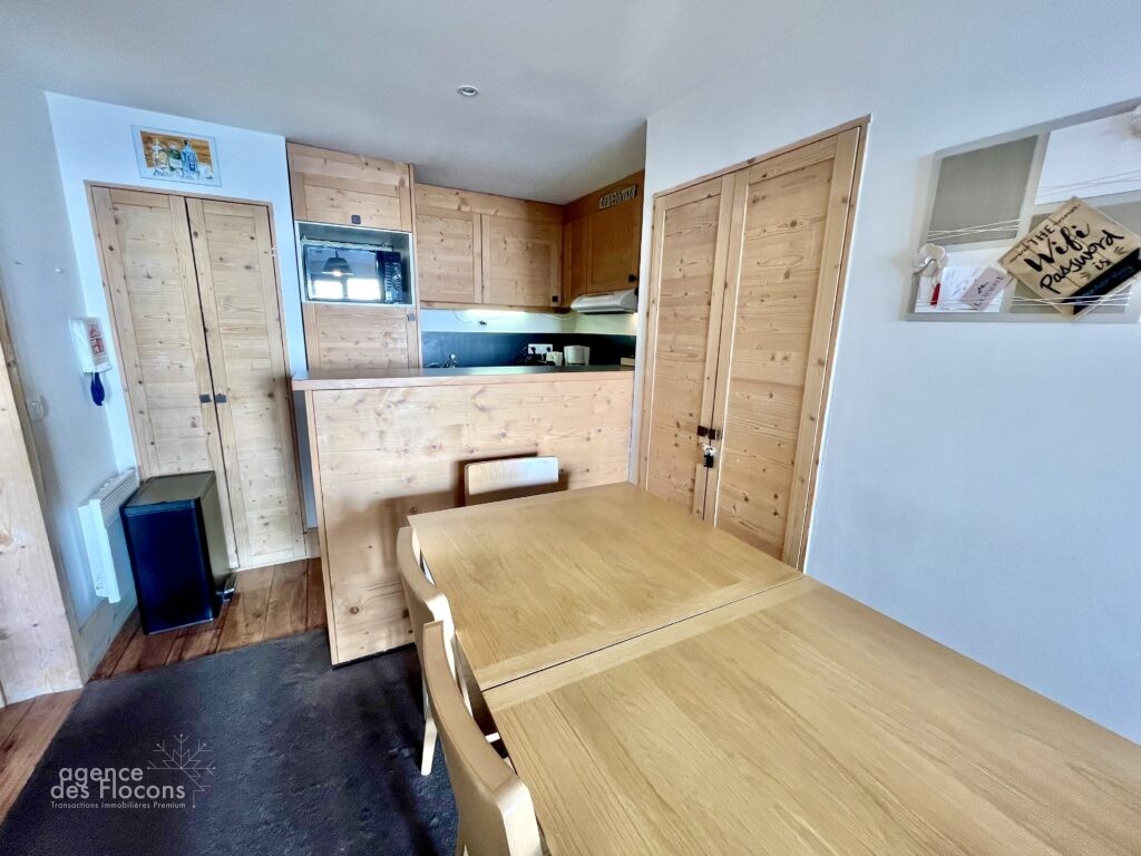 Ce bien est vendu meublé et équipé pour 8 personnes, avec la jouissance d’un grand casier à skis équipé de sèche-chaussures, situé dans les parties communes .