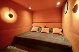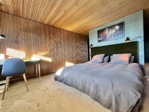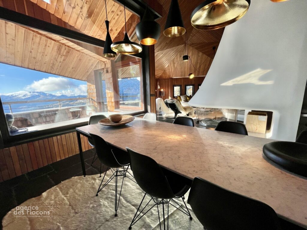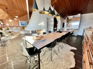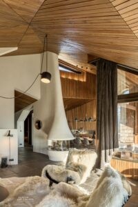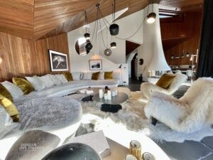 Incroyable séjour cathédrale de 75 m2 entièrement ouvert et composé de plusieurs espaces, tous plein de charme: magnifique cuisine dinatoire avec équipements professionnels, grand salon avec canapés sur mesure et une cheminée unique dessinée dans le pure style avoriazien, confortable salon TV et accès une belle terrasse protégée du vent et des regards, exposée sud-ouest et embrassant toute la Vallée de Morzine et ses sublimes couchers de soleil