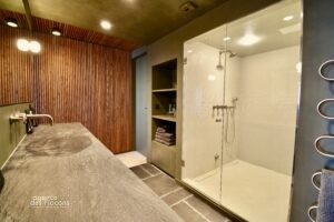 Dégagement, une buanderie, une immense chambre de 30 m2 en suite avec dressing, salle de bains avec double vasque et douche-hammam, WC indépendants. Deux belles chambres double en suite avec chacune une salle de douche, WC indépendants