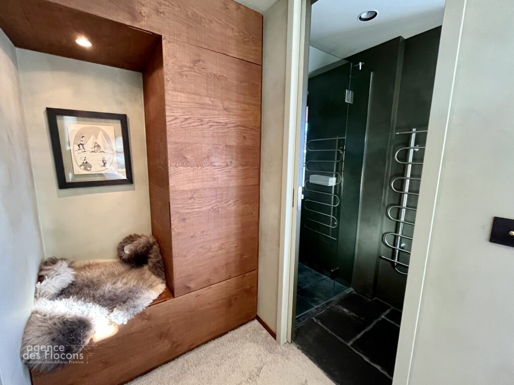 Dégagement avec rangements, un home-cinéma, un ski room avec accès direct au Boulevard des skieurs, une chambre double en suite, grande salle de bains avec douche et baignoire, une chambre double, une chambre » enfants » avec un lit double et deux lits superposés, WC indépendants