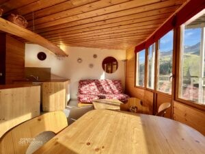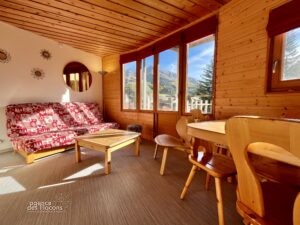 Dans le quartier des Ruches, au sein de la petite copropriété du Vivace, idéalement située en contrebas du centre station, bien au calme mais à 1 minute à pied du Village des Enfants et avec accès direct sur la piste, ce 2 pièces cabine lumineux est en excellent état, doté d’une très belle vue vers Arare et d’une agréable exposition Ouest, il a été très bien pensé.