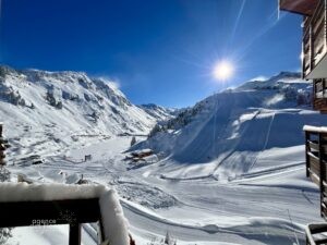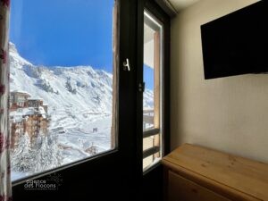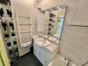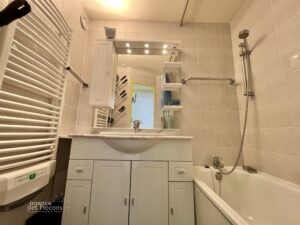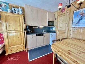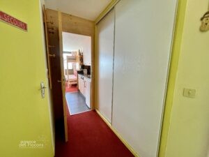 Dans le secteur calme des Hauts Forts, à deux pas de l’arrivée du Téléphérique des Prodains, au sein de la résidence Pas du Lac, en étage élevé, ce grand 2 pièces de 32 m2, exposé Est, s’organise ainsi :