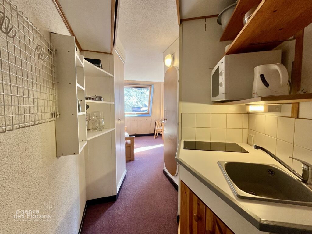 Dans le quartier des Ruches, au sein de la résidence Andante, située en centre station, à proximité du Village des Enfants, ce studio situé au 6ème et dernier étage de la résidence, s’organise ainsi :