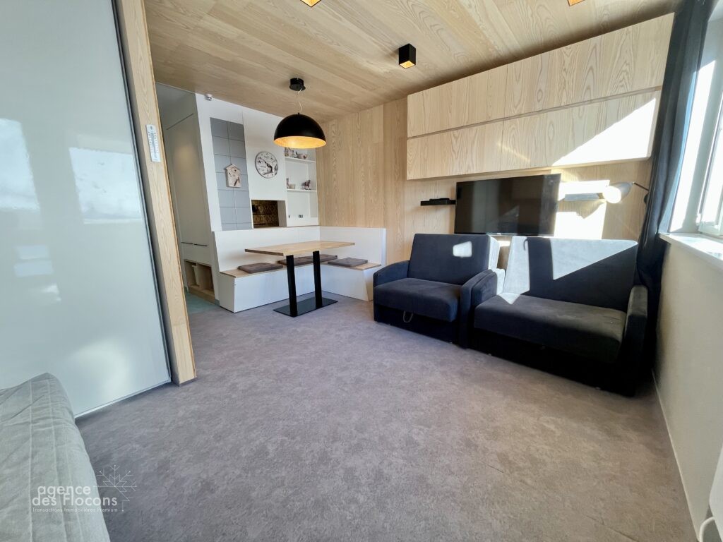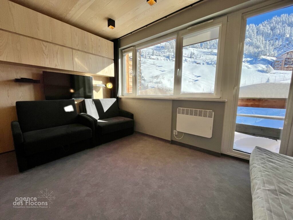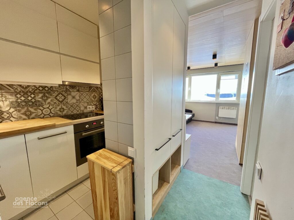 Located in the quiet Crozats district, yet just steps from the resort center, this spacious, renovated 26 m² studio apartment, situated on the 9th floor of the Alpages 1 residence, comprises the following: